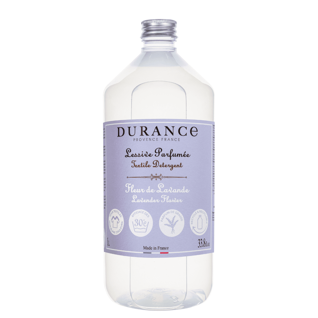 El detergente perfumado Flor de Lavanda -1L de Durance, sin colorantes, sin conservantes y sin ingredientes de origen animal, está formulado con un 80% de ingredientes de origen natural.