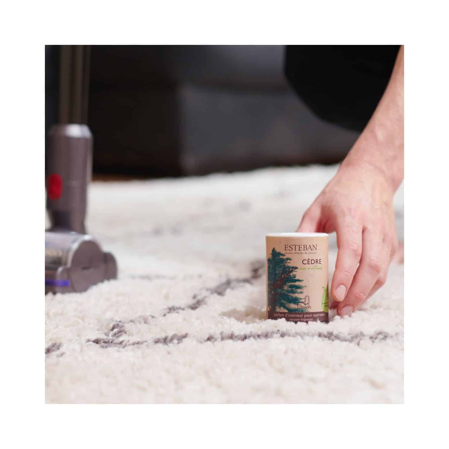 El polvo aspirador natural Cèdre transforma la limpieza en una experiencia sensorial con un aroma fresco y duradero. Compatible con cualquier aspiradora, se activa con la circulación de aire, dejando tu hogar perfumado.