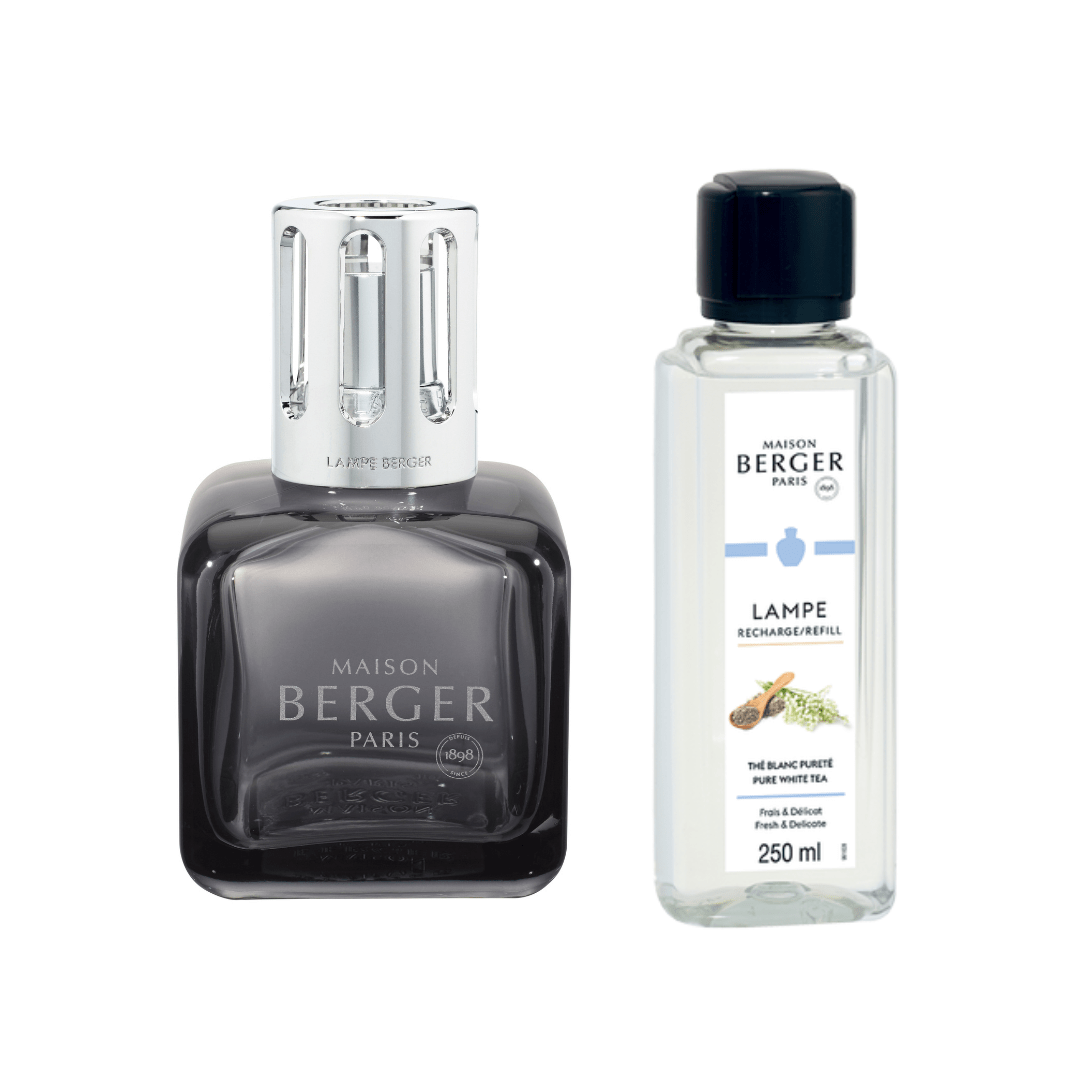 Se presenta en un cofre que incluye: 1 tapón normal, 1 tapón difusor, 1 mecha, 1 pequeño embudo y 1 recarga para lámparas catalíticas Thé Blanc Pureté 250 ml.
