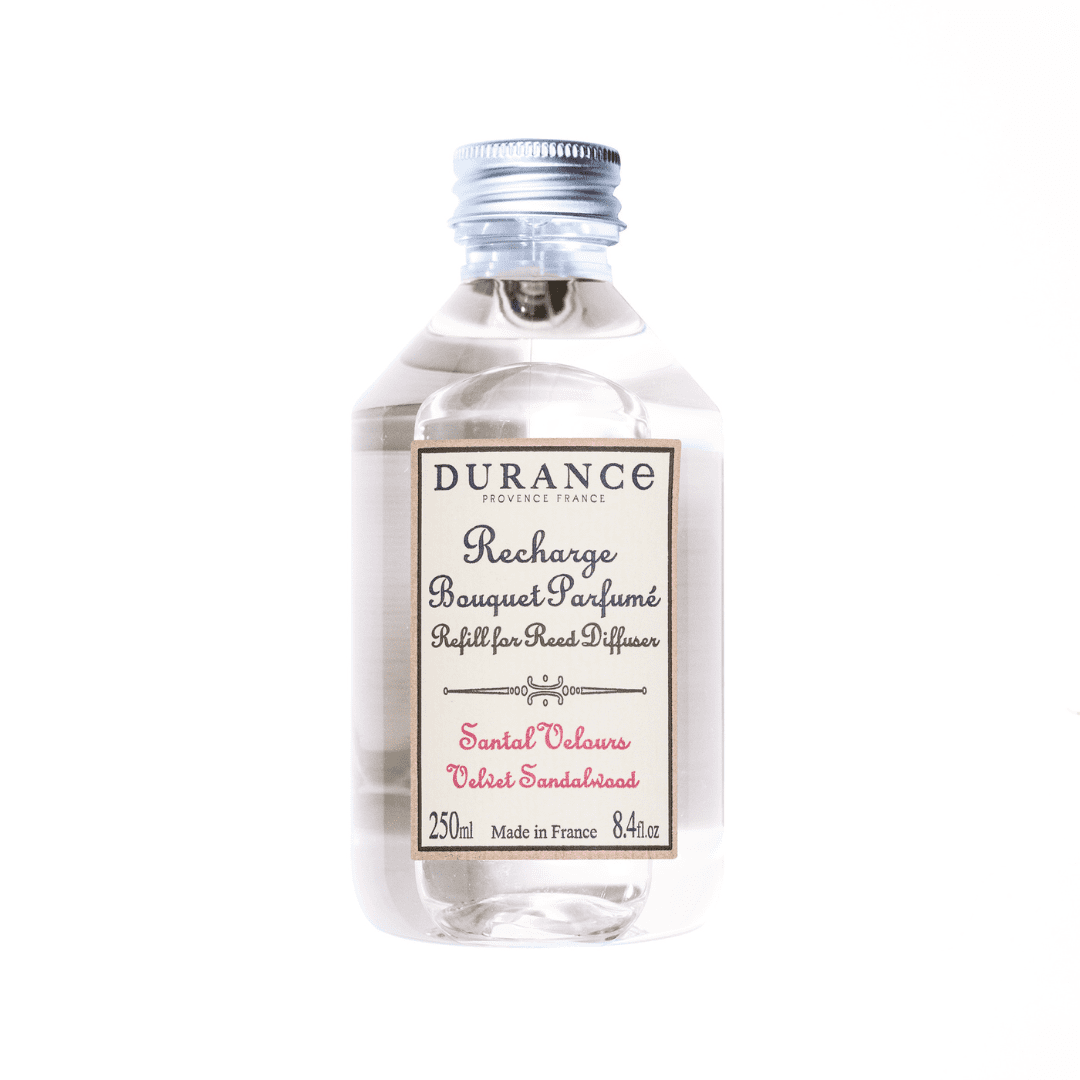 Sigue disfrutando de tu difusor de varillas o bouquet con el recambio de mikado Sándalo Aterciopelado -250ml de Durance. Su fragancia acogedora, aterciopelada y suavemente amaderada por notas de sándalo, nos ayuda a mantener perfumado nuestro entorno y evita que se genere un ambiente cargado y pesado, aportando bienestar, calidez y buen gusto.