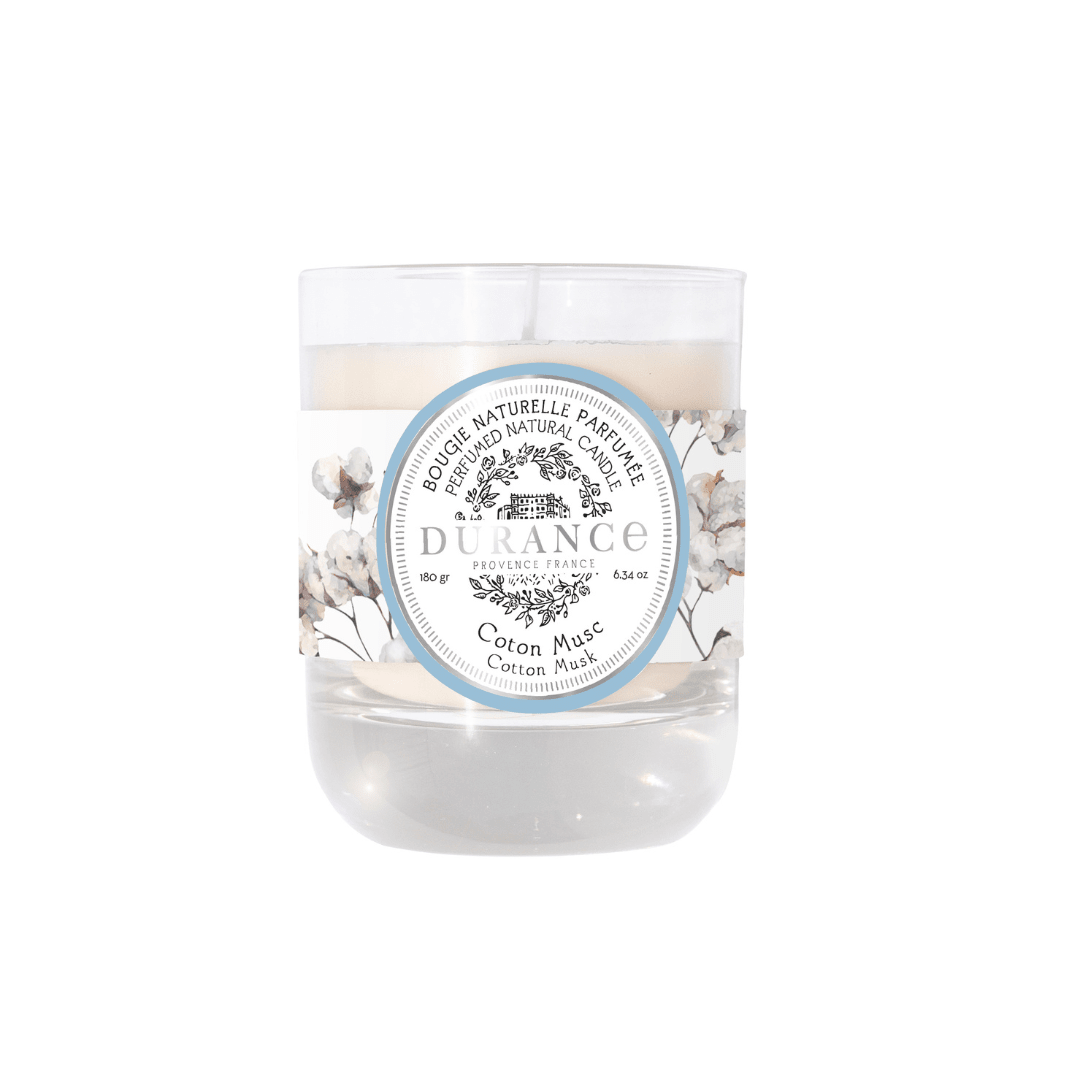 Esta vela natural perfumada Algodón Almizclado -180 gr de Durance, de fragancia floral empolvada y envolvente, difunde su perfume de manera óptima, intensa e inmediata, creando un ambiente muy agradable.