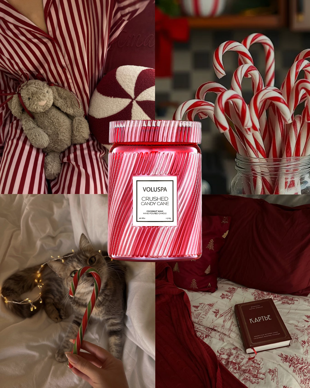 El aroma más rico de las fiestas llega en forma de vela. Crushed Candy Cane – vela vidrio 510  gr combina la frescura del peppermint con la calidez de las galletitas de mantequilla recién horneadas. Huele, literalmente, a un dulce flechazo navideño que no querrás soltar.