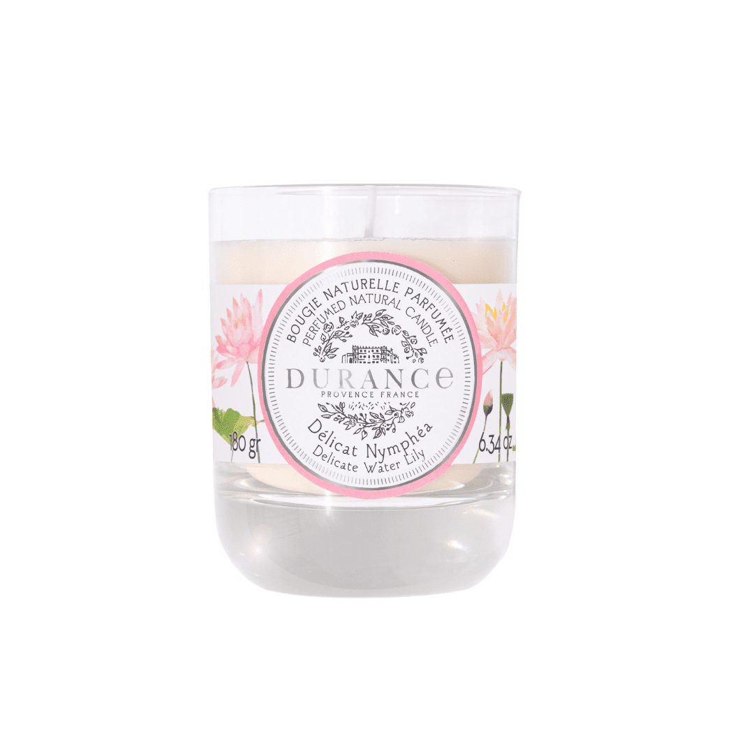 Esta vela natural perfumada Delicado Nenúfar -180 gr de Durance, de fragancia floral con notas ácidas por las frutas, difunde su perfume de manera óptima, intensa e inmediata, creando un ambiente muy agradable.