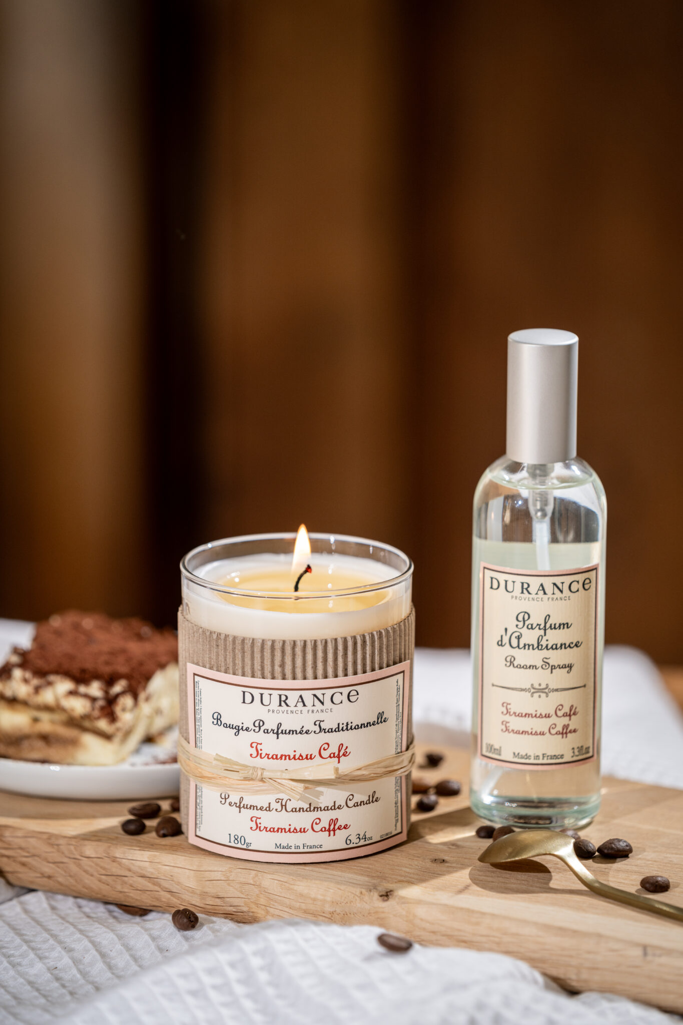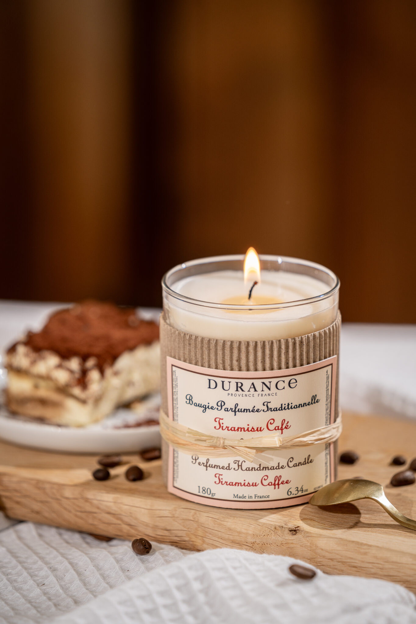 Esta vela perfumada Tiramisú Café -180 gr de Durance, de fragancia cálida y exquisita por la vainilla dulce y el café tostado, con notas de coco y cacao en polvo, difunde su perfume de manera óptima, intensa e inmediata, creando un ambiente muy agradable.