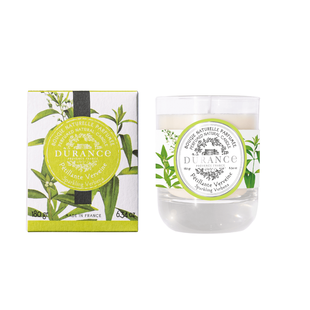 Esta vela natural perfumada Verbena Chispeante -180 gr de Durance, de fragancia cítrica por la verbena y el limón, difunde su perfume de manera óptima, intensa e inmediata, creando un ambiente muy agradable.